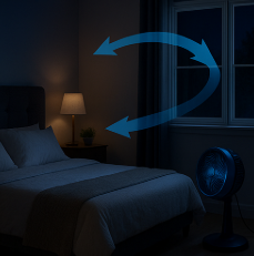 A 창문을 살짝 열고 선풍기를 바깥으로 돌려보세요. 공기가 바뀌면 온도 체감도도 바뀝니다.