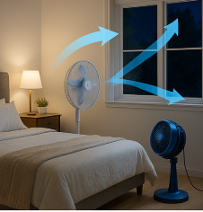 열대야 밤엔 창문을 열어도 시원한 공기가 잘 안 들어오잖아요. 그럴 땐 서큘레이터와 선풍기 조합이 진짜 짱이에요. 창문은 살짝 열고, 선풍기로 바깥공기를 끌어들이면서 서큘레이터로 안쪽 공기를 밀어내는 거죠. 공기의 흐름이 생기면 체감온도도 확 줄어요. 방향을 교차시키면 바람이 순환하면서 눅눅한 공기도 빠르게 배출된답니다.